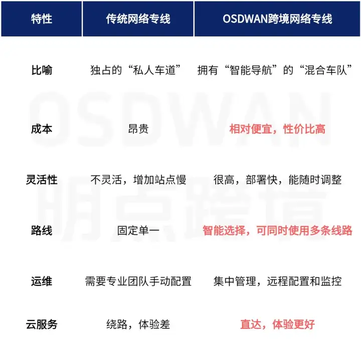 相较于传统的SD-WAN服务商,OSDWAN跨境网络专线也有极大突出优势:更好用、更高性价比、更安心。