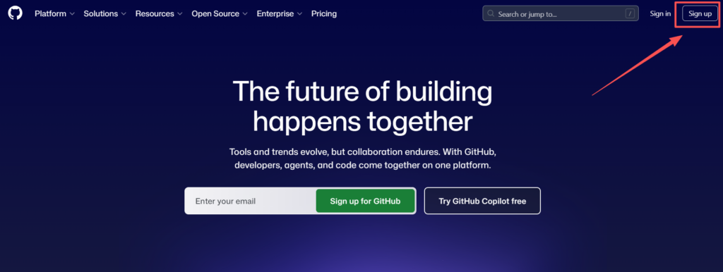 建议在谷歌浏览器打开无痕模式中打开GitHub官方网站,点击 Sign up。