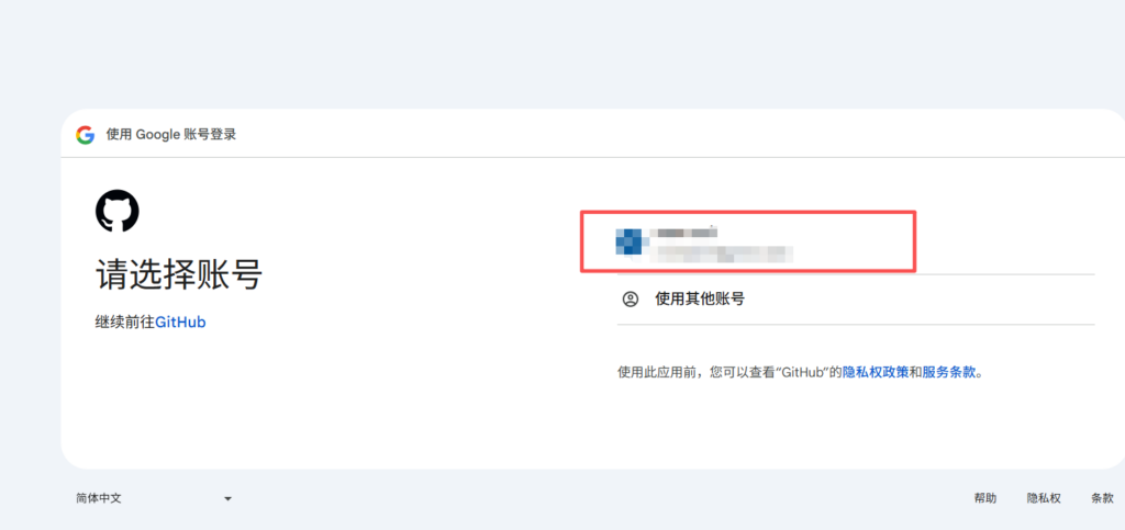 3、选择你的谷歌账号继续进行下一步,然后使用谷歌账号登录GitHub