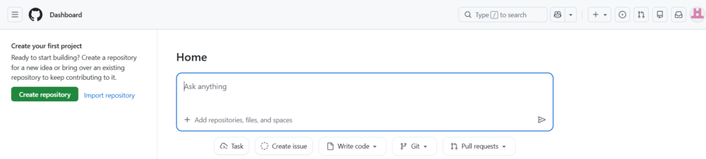 5、到这一步就注册成功了,可以使用github了。