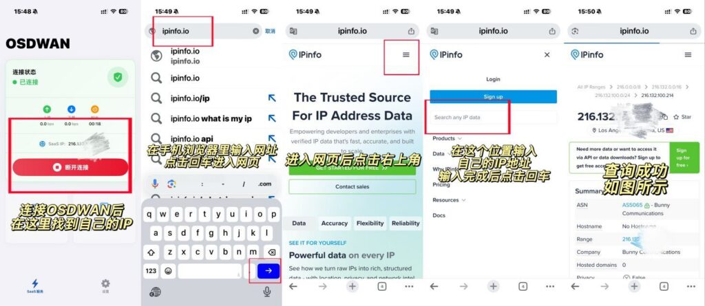 ipinfo查询教程(以OSDWAN为例):