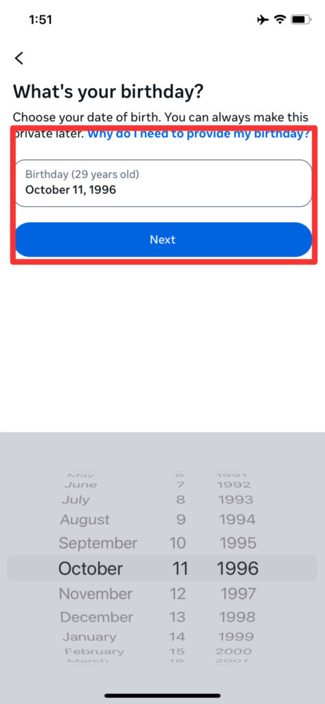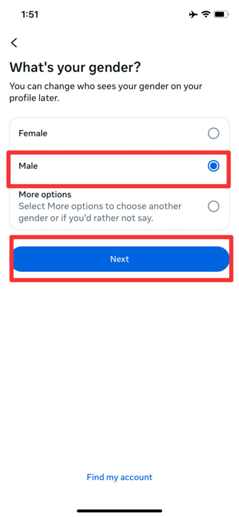 2、根据上面的显示填写信息,姓名,日期、性别,尽量填写邮箱(优先使用Gmail邮箱注册)