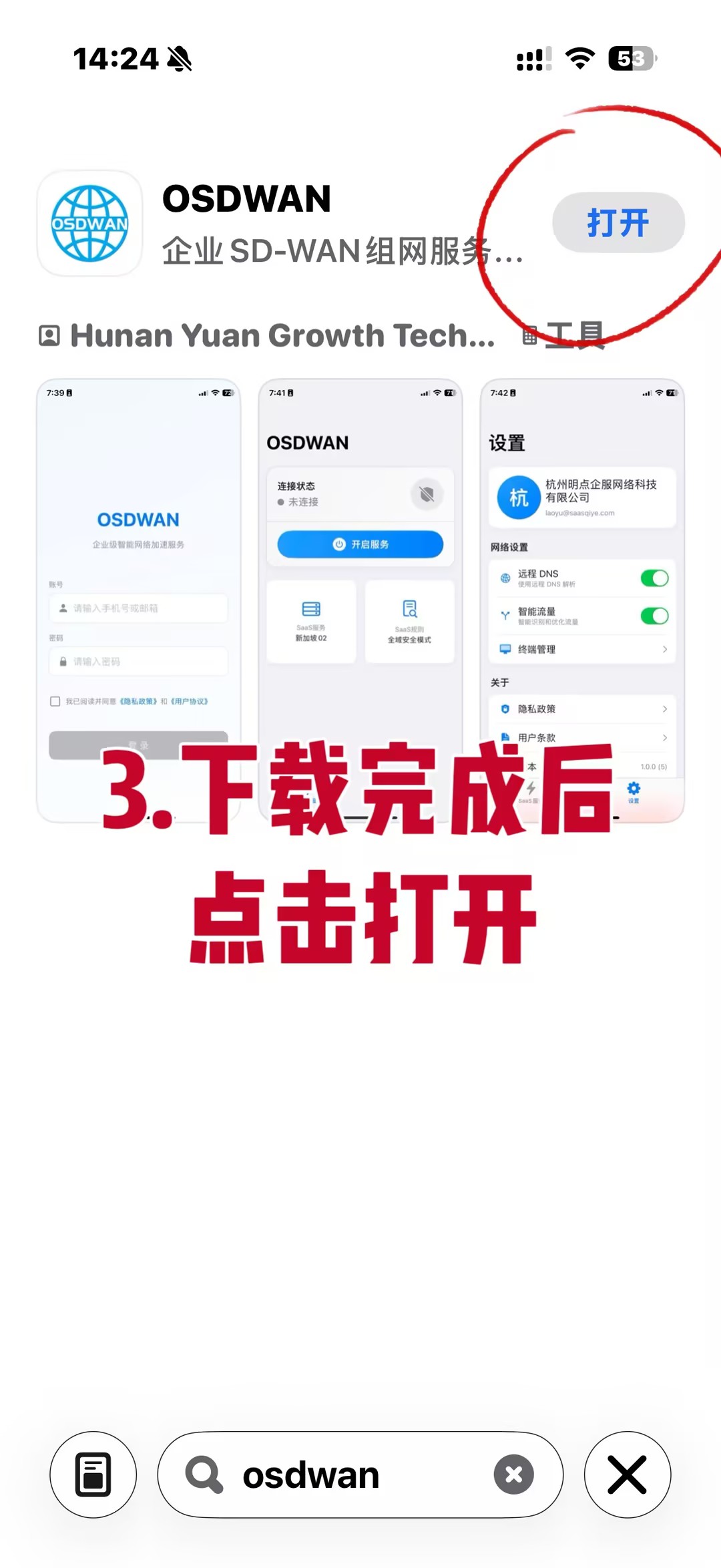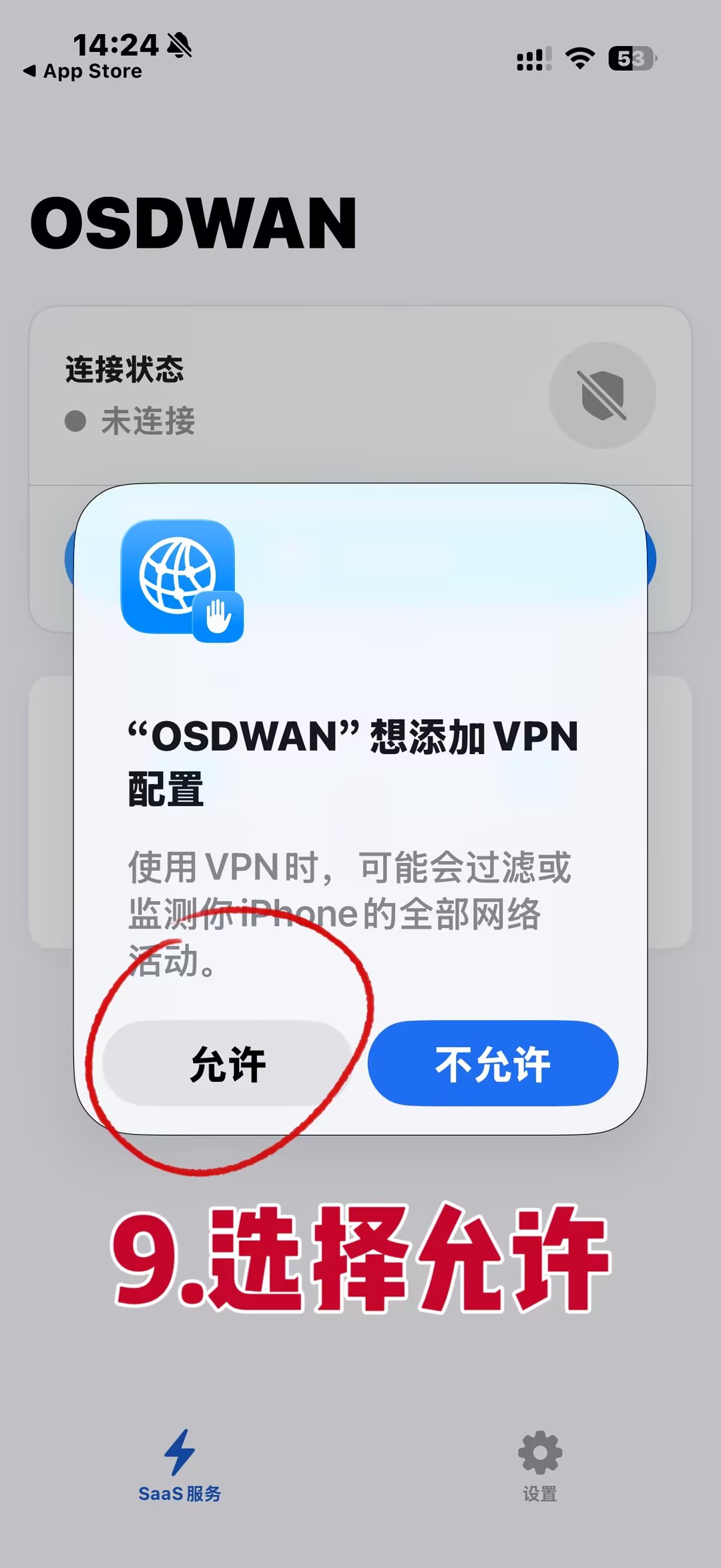 OSDWAN支持苹果手机、苹果电脑、Windows电脑、安卓手机等设备安装使用,以下为苹果手机(iPhone)使用教程。