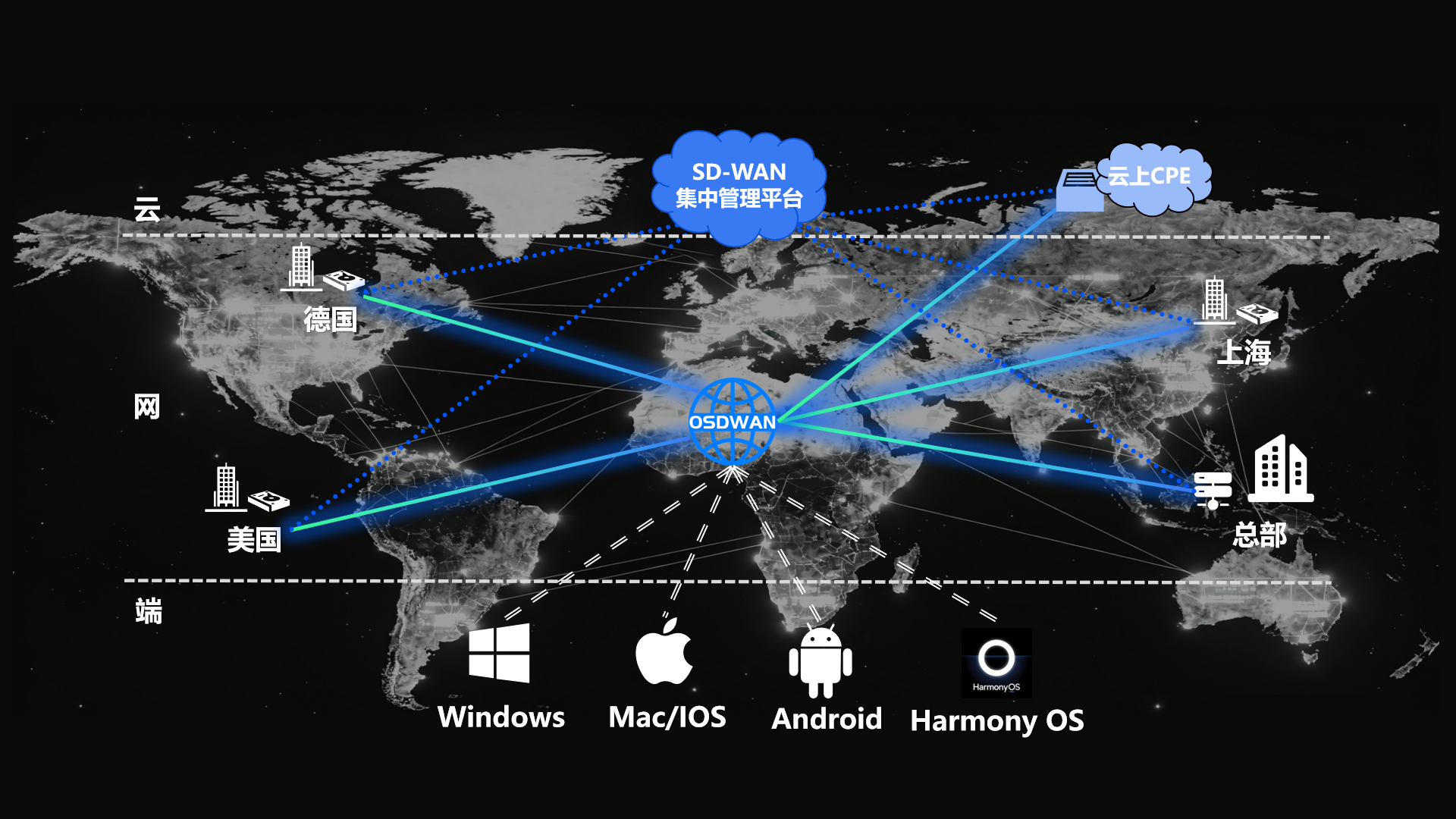 它不是单一的线路,而是一种智能管理和优化网络的技术,可以将企业现有的多种网络线路整合起来,统一管理、智能调度。
