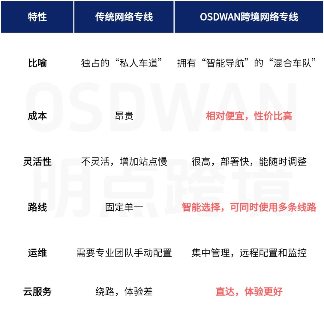 相较于传统的SD-WAN服务商,OSDWAN跨境网络专线也有极大突出优势:更好用、更高性价比、更安心。